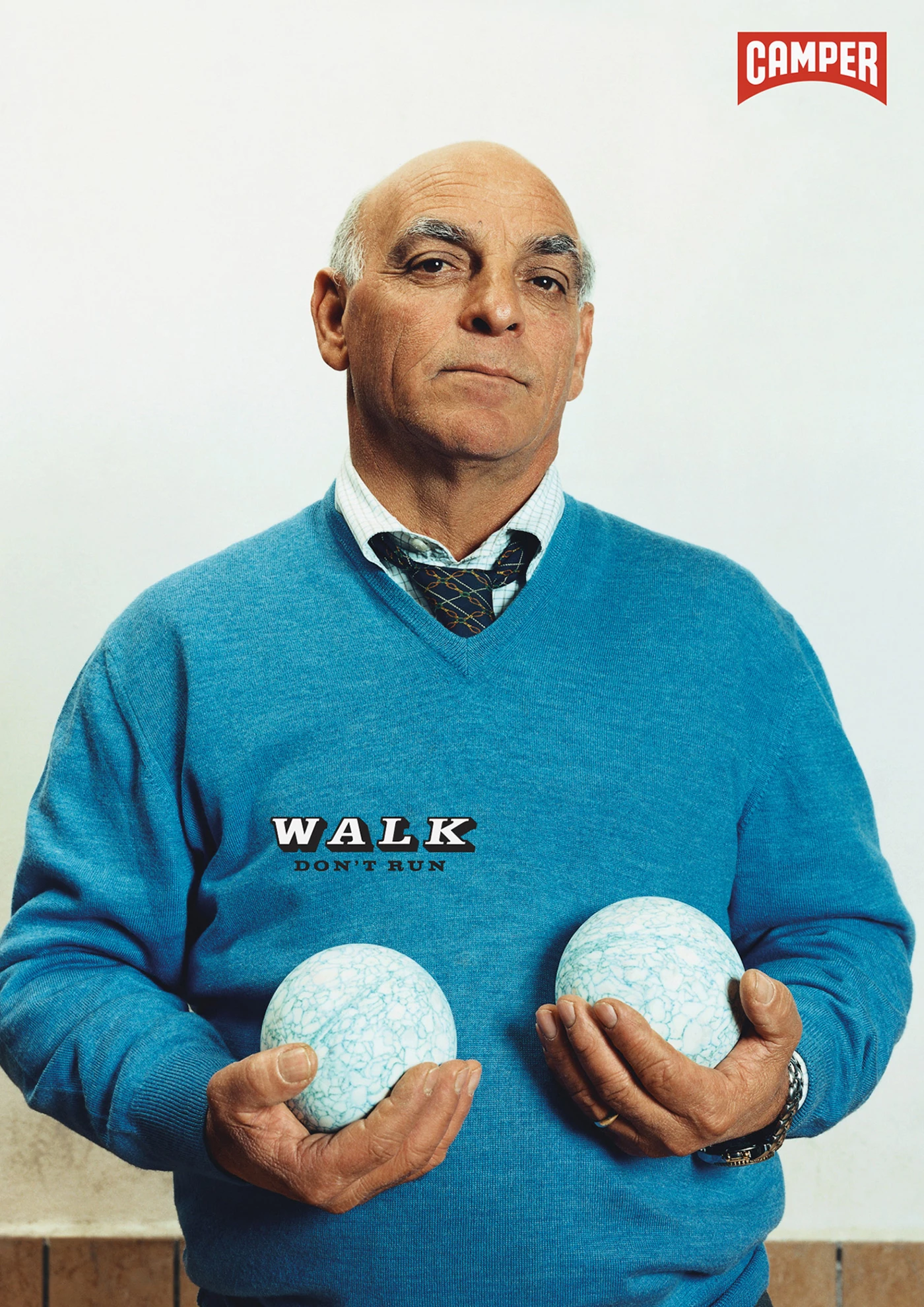 ‘Walk, Don’t Run’ starts as a 2001 campaign for The Walking Society and becomes our slogan, embodying the values of our slow Mediterranean lifestyle. The verb “to walk” has many meanings, all important to our philosophy. With our feet on the ground, we are always moving, progressing, improving, evolving, innovating. We want to create a playful and responsible walking experience that makes people smile.